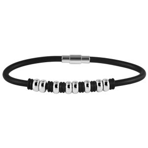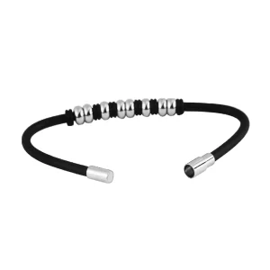 Un elegante bracciale flessibile da uomo, in una combinazione di caucciù di alta qualità e acciaio chirurgico inossidabile, con dettagli decorativi.